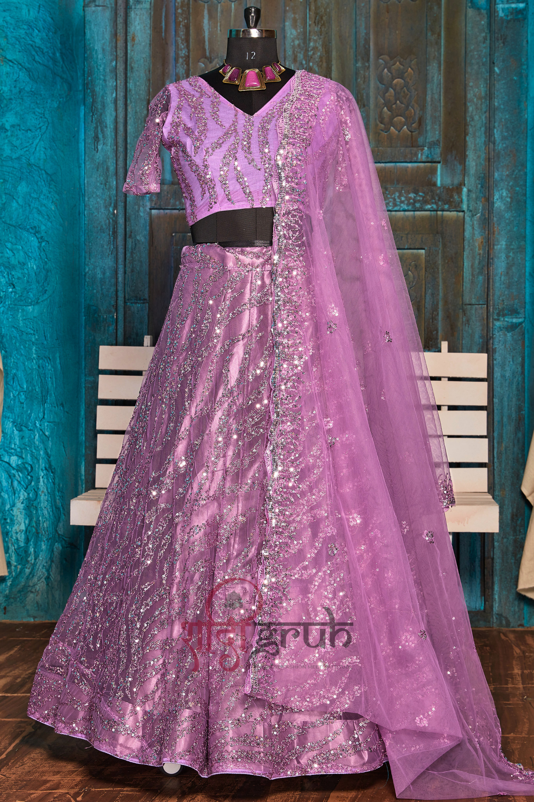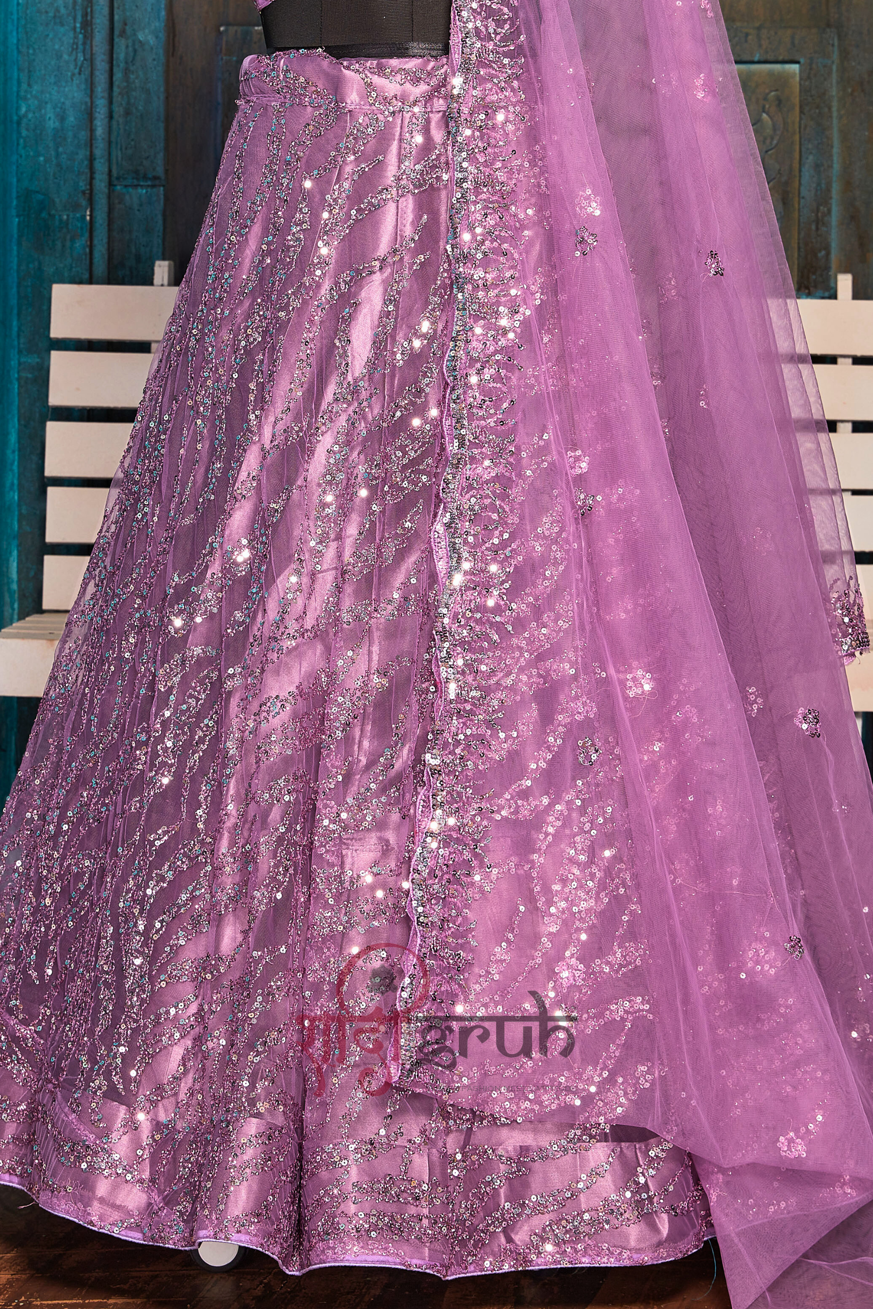 Lavender Sequin Embroidered Lehenga Choli with Net Dupatta