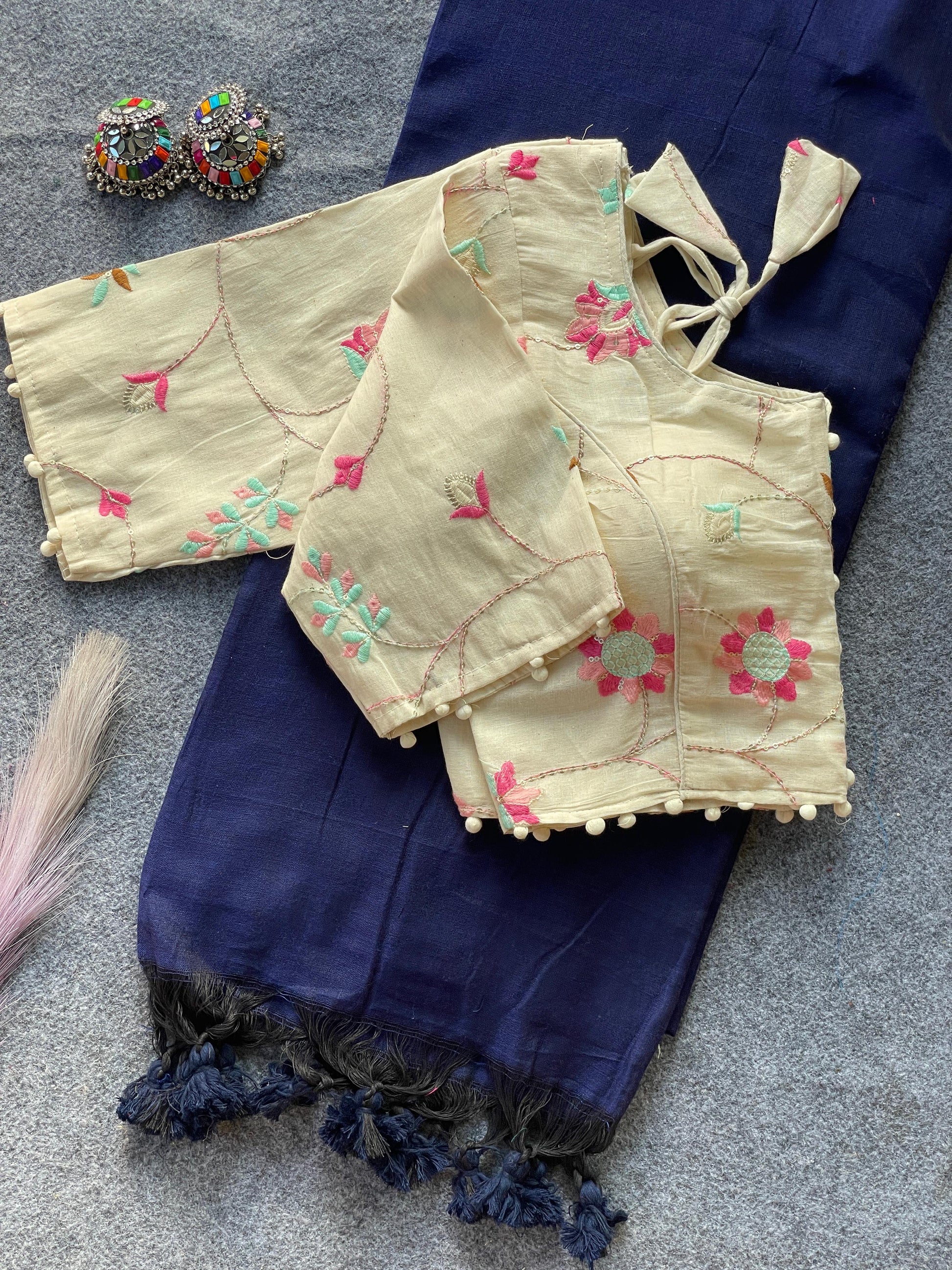 😎Blouse :- Pure Khadi Blouse with work (size 38 alterable up to 42)