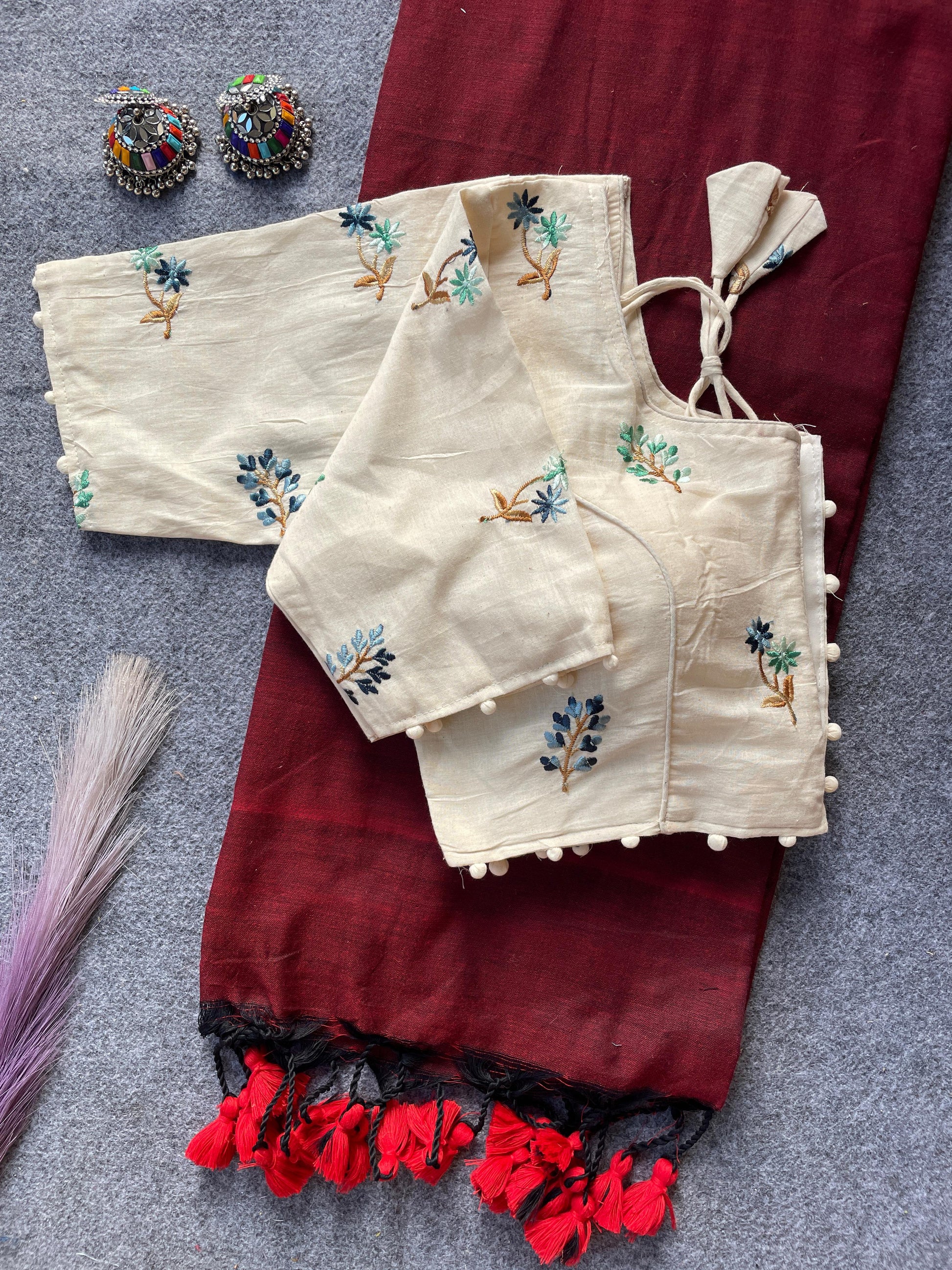 😎Blouse :- Pure Khadi Blouse with work (size 38 alterable up to 42)