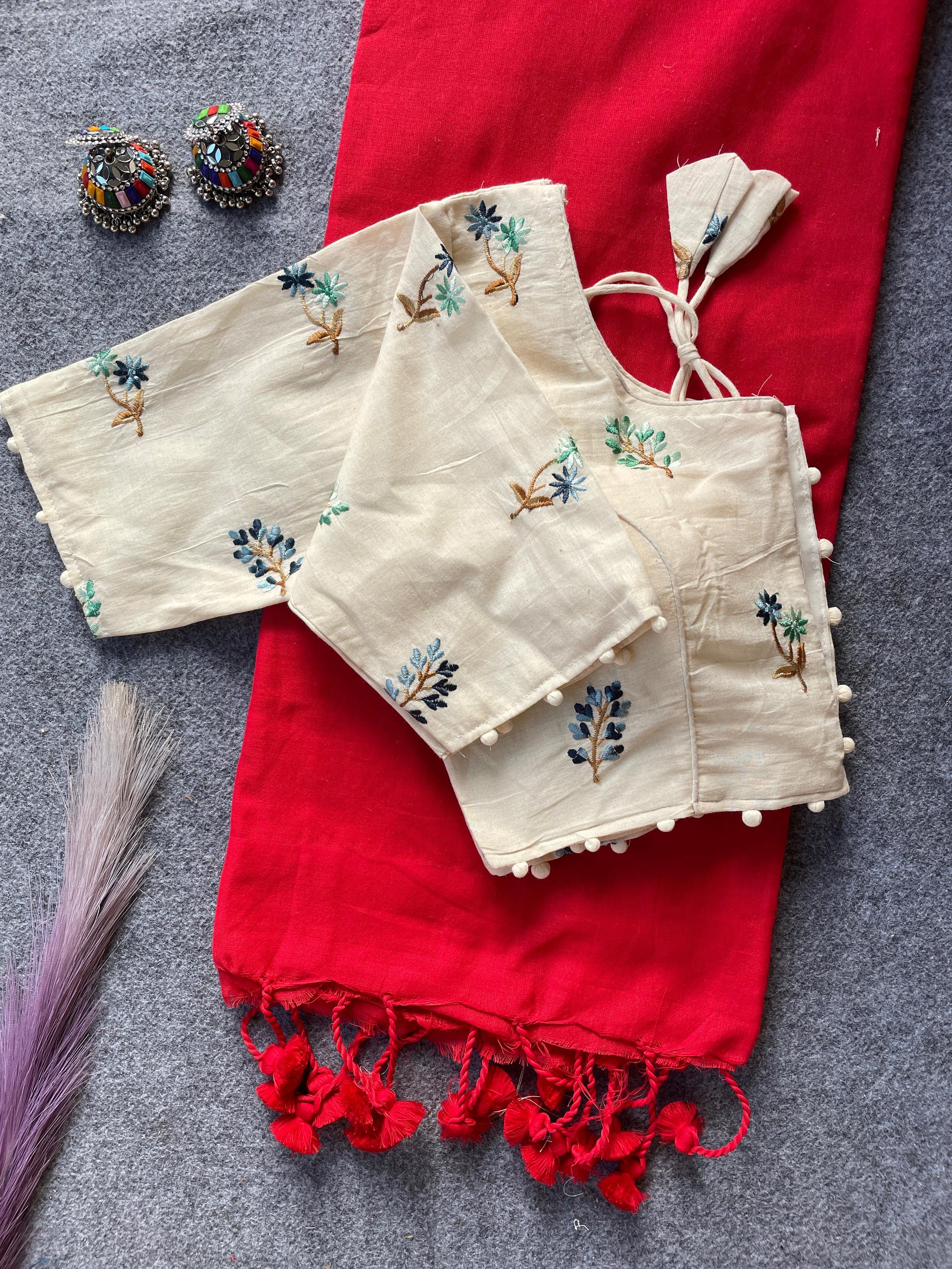 😎Blouse :- Pure Khadi Blouse with work (size 38 alterable up to 42)
